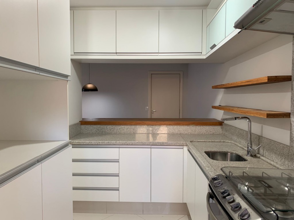 - COZINHA COM ARMÁRIOS PLANEJADOS, FOGÃO, EXAUSTOR E PIA EM GRANITO;